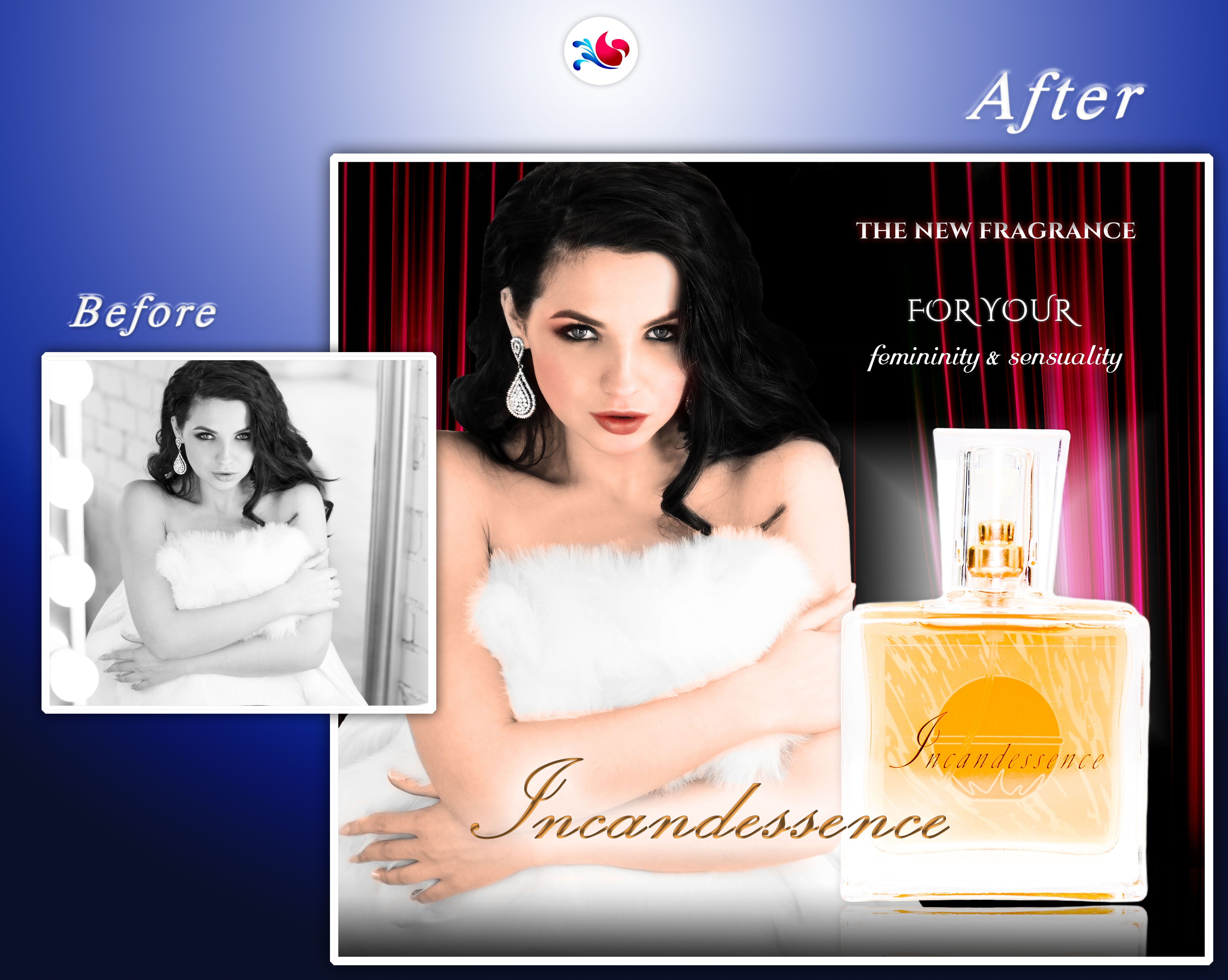 Mai jos îți prezint un proiect AlidArt Design – un design de banner publicitar (static), intitulat: Parfumul exotic Incandessence!