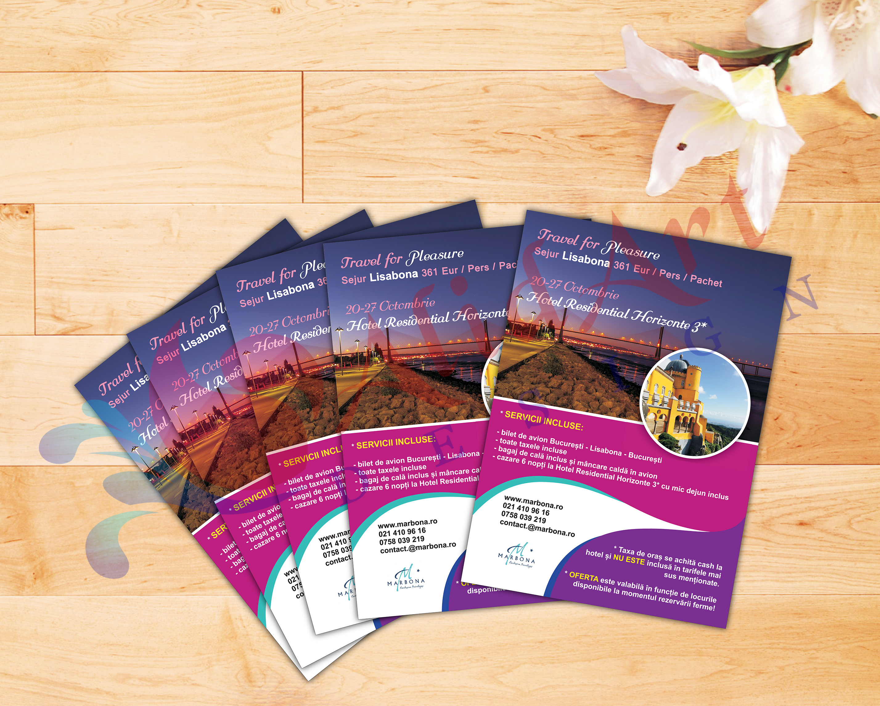 Acest proiect a fost realizat pentru agenția de turism Marbona Travel, cu scopul de a prezenta către publicul țintă o nouă ofertă turistică – destinația Lisabona, Portugalia.